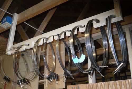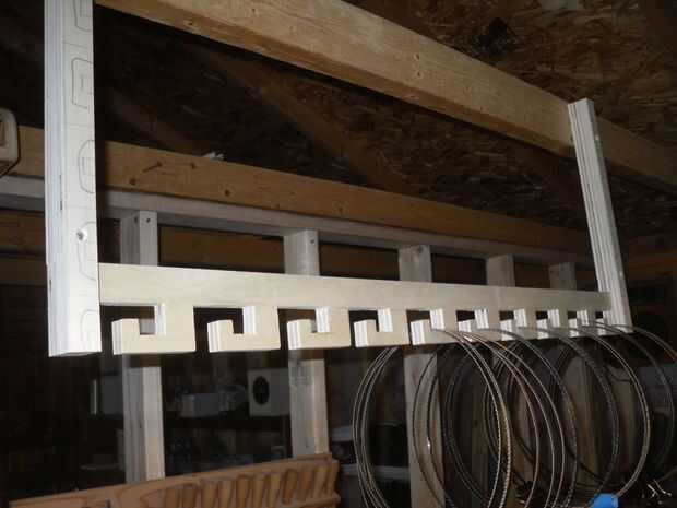 Desde este edificio, he añadido aislamiento al techo, así que tuvo que montar esto para la parte inferior de las cerchas. Para permitirme desplazar la cremallera en la parte inferior de las cerchas, añadí pedazos, en la parte superior y correr ayuda, para añadir espesor que me permitía perforar a través de ella y use tornillos para montarlo en cualquier lugar que quería.