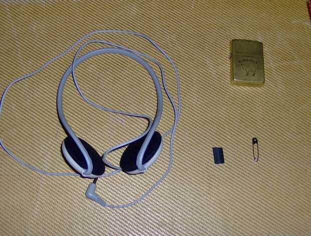 Todo lo que necesitas son un par de auriculares o brotes de oído un trozo pequeño de la tubería del encogimiento y un pin de seguridad.