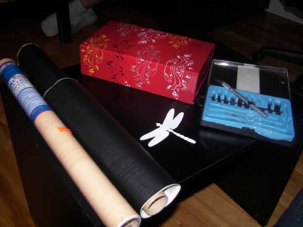 Uno o más rollos de papel de belleza cubierta, dependiendo del tamaño del objeto va a cubrir y el color del patrón va a hacer.
