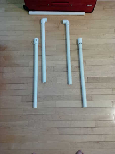 El estante de la ropa se hace de 5 de la longitud de los tubos de plástico que vienen aparte para caber en la maleta para el transporte