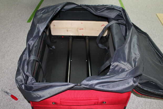 La medida debe ser para un ajuste apretado un poco, pero no tan apretada que la madera destaca a la tela de la maleta