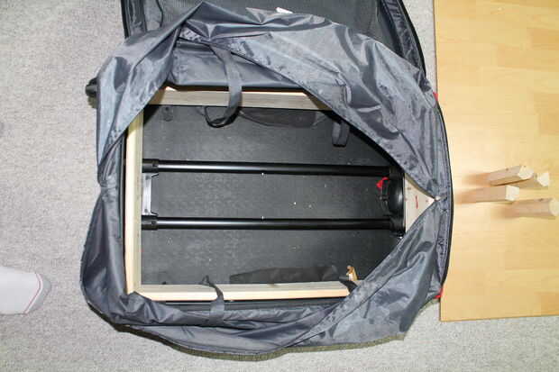 Si tu maleta tiene correas en el interior y desea poder usarlos después de que haya terminado, usted necesita sacarlos de nuevo a través de y ejecutarlos en el interior del bastidor como se muestra