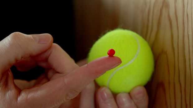 Consejo: Hacer seguro el Sugru manchas en la capa difusa de la pelota de tenis.