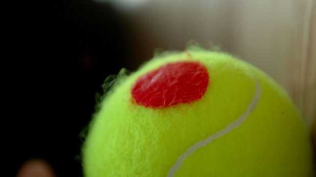 Mancha del guisante tamaño piezas de Sugru sobre la superficie de la pelota de tenis, este contribuye a garantizar un fuerte vínculo de Sugru.