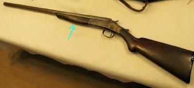 un amigo tiene una escopeta Stevens Nitro especial casi antigua.  El tornillo que sostiene la acción del antebrazo para el cañón había sido doblado y no se asienta completamente.  (Ver la flecha azul para la ubicación del tornillo).  Él había sido un armero que le dijo no era cualquier tamaño estándar y sería casi imposible de reemplazar.