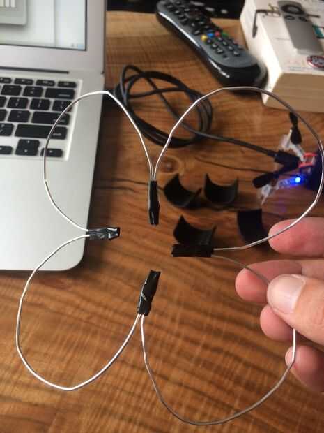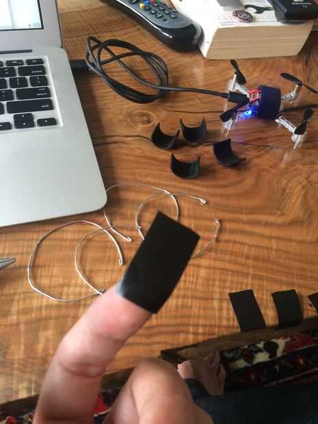 Use algunos cinta aisladora para asegurar los aros juntos extremo a extremo. Usted debe terminar con un trébol de cuatro hojas como en las fotos. Esto evitará que los componentes eléctricos seguro también. Después de todo los aros están asegurados. Poner todo en el suelo y presiona con un libro.
