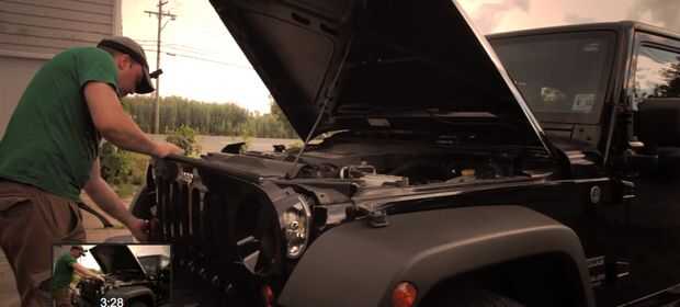 Volviendo a la parte delantera del Jeep, la parrilla de la parte superior del gancho agarrador y lado y necesita para la parrilla. Hay fichas en la parte inferior que haga estallar hacia fuera. Es necesario utilizar la fuerza, pero va a salir bien.