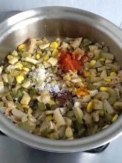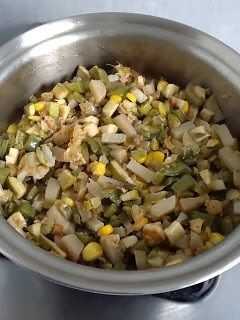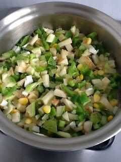 En una cacerola calentar aceite y mantequilla de búfalo. Añadir que todos cortan verduras y pasta de jengibre. Alevines hasta tierno.
