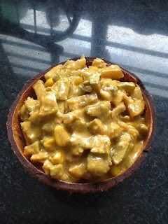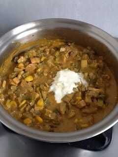 Añadir pasta de anacardo con conexión a tierra (puede añadirse leche de coco), revolver y cocinar durante un minuto. Agregar la crema y apagar la llama. Mezclar bien y cerrar la tapa y deje establecido.