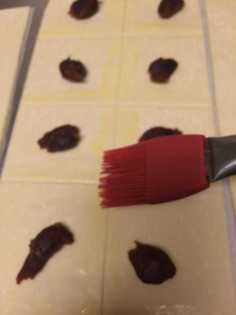 así que ir a continuación con un pincel o la yema del dedo limpio (todos sabemos que ha sido la punta del dedo) y Humedezca ligeramente 2 los bordes de cada cuadrado con el lavado de huevo.