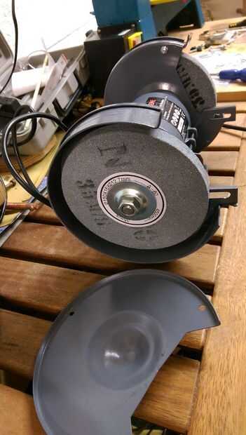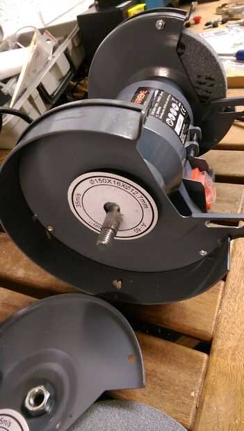 La guardia se lleva a cabo junto con tres tornillos de máquina, Deshacer para quitar la cubierta exterior. En el interior verás el disco celebrado por una tuerca grande y un disco de metal. Las tuercas a cada lado girar en diferentes direcciones y no pueden ser intercambiadas. Quitar los discos y cualquier accesorios.
