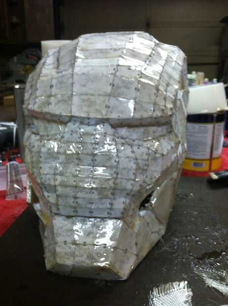 Primero se puso una capa de la resina de fibra de vidrio en el interior y fuera de su casco de papel. Siga las instrucciones en la lata de resina para asegurar que el proceso transcurra sin problemas. Lo más importante para este paso es usar el respirador y guantes porque son materiales muy tóxicos. Después de mezclar la resina como dice el poder, comienzan a aplicar dentro y fuera del casco con los cepillos. No lo ponga demasiado espeso o pesado porque podría saturar el casco y colapsar el papel.