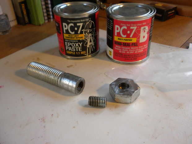 Mezclar algunas epoxi PC 7, (estas cosas funciona muy bien) y poner en el agujero en la cabeza.