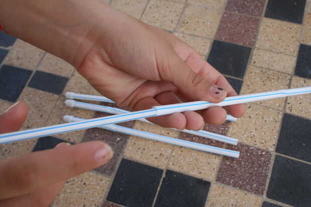 aprender a hacer una guerra mundial 2, plano del juguete de una pajita y 2 cuchillos de plástico.Paso 1: Material Para hacer este avión de guerra mundial 2 de estilo de una paja de plástico y plástico cuchillos necesita.plástico desechable 1 paja.2 c