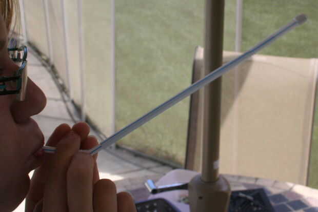 estas son las partes que necesita.Paso 1: pluma La pluma.Paso 2: desarmar la pluma Desarmar la pluma.Paso 3: corte pluma Ahora corte el extremo cerrado de la pluma.Paso 4: tubo Tuerca del tubo en la botella de pop.Paso 5: la cinta Poner la cinta alre