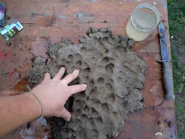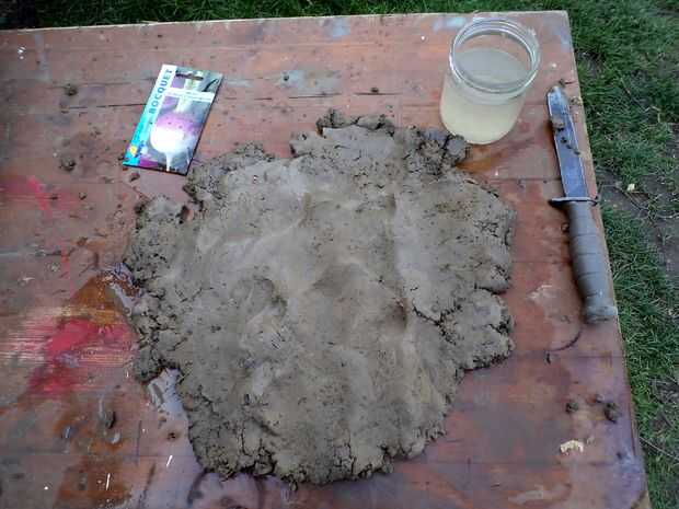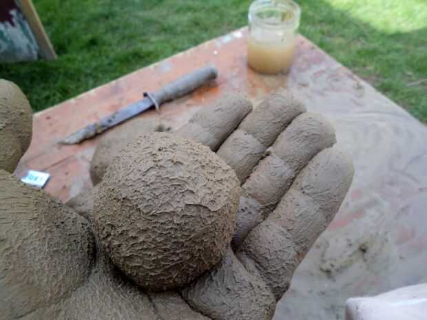 Estirar algunos arcilla - mojando el soporte primero porque a palillo- o usar el poder de puño para hacer un pastel.