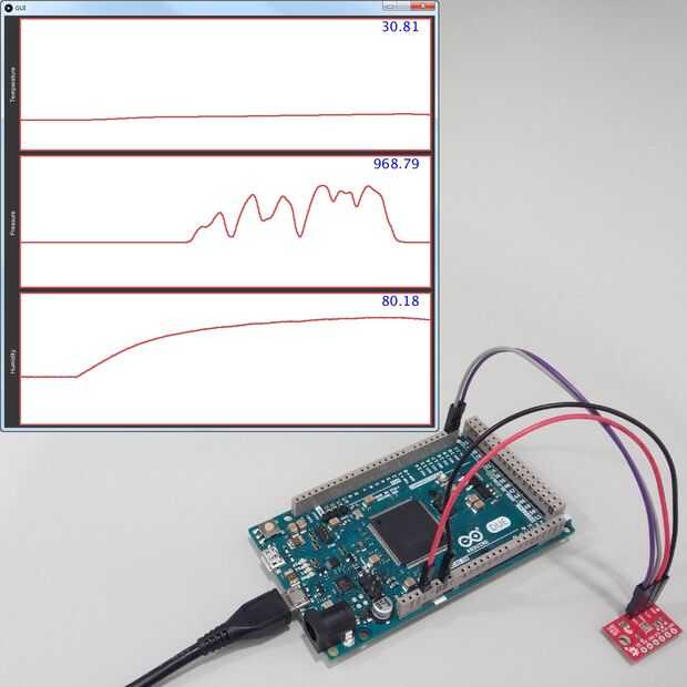 En este proyecto he portado mi implementación del controlador de BME280 de la anterior (de proyecto) para Arduino y construido una interfaz de usuario gráfica que traza los valores de los sensores recibidos en tiempo real en un PC.