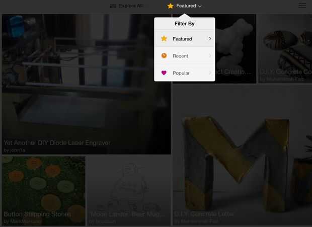 Al hacer clic en este botón, usted conseguirá tres opciones: destacados, populares y recientes. Cada uno es fiel a su nombre, así que nada de fantasía sobre él.