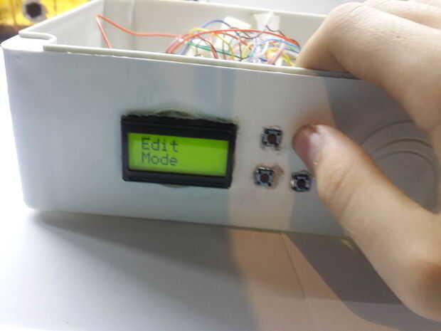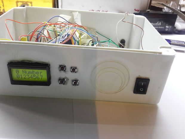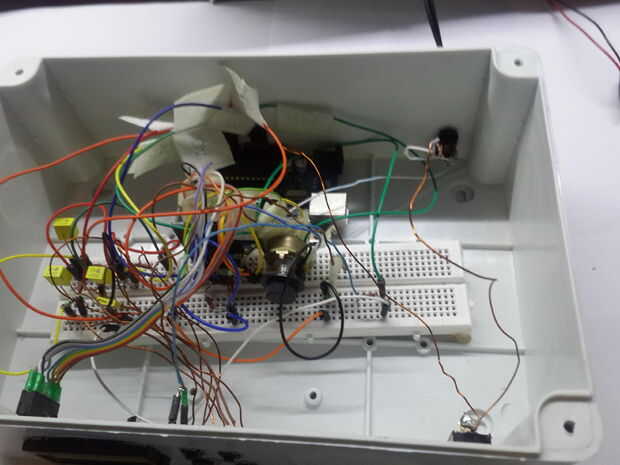 Así que después de soldadura se lleva a cabo, y todas las piezas estén en su lugar que podemos empezar todo cableado, enchufe de potencia son dos cables, antes de conectar tienes que comprobar que uno de sus cables es positiva y que uno es tierra (negativo), probar conexión batería de 9V y usar el multímetro, así que después de haber identificado los cables puedes seguir el cableado. Conecte el cable positivo on/off cable primera de interruptor y conecte el segundo cable del switch al pin de Vin de Arduino de encendido-apagado, conecte el cable negativo (tierra) del enchufe al pin Gnd de arduino (ADVERTENCIA: Añadir un diodo pin de Vin de Arduino, ya que si se invierte la polaridad, dañarás tu arduino). Si lo desea también puede descargar el circuito: