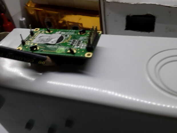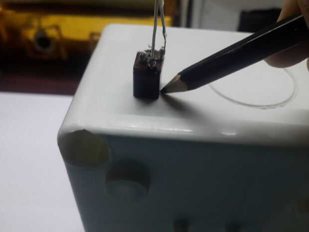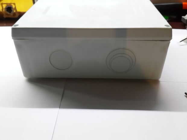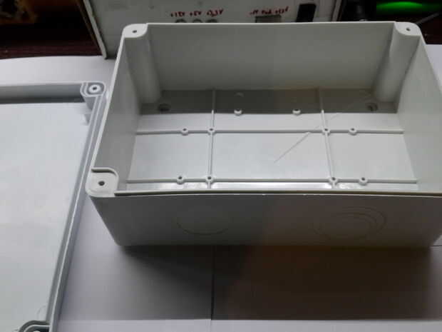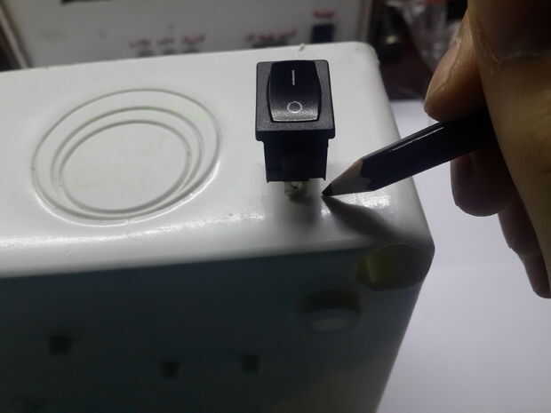 Ahora para que el proyecto se ven bien que podemos poner todo en una caja, en este paso necesitará una caja grande para que todo (Arduino protoboard) cabrían. También necesitamos un soldador o un buen cuchillo para cortar la caja. Así que en primer lugar encontrar un lugar donde usted quiere su lcd que, después poner lcd en ese lugar hacia abajo (como se muestra en la fotografía) encontrar un marcador (o un lápiz) y marcar, luego lo mismo con botones, On/Off interruptor y alimentación enchufe.