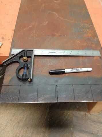Un corte preciso comienza con precisa un exacto corte o marca en la pieza de trabajo. Esto se hace generalmente con una piedra de jabón o rotulador y una regla con un borde recto. Para esta demostración he decidido mantener bastante sencillo y hacer una 2 "x 2" x 2 "contenedor de metal de hoja. Por lo tanto, necesitaré 5 2 "x 2" plazas para completar mi proyecto. Yo primero escriba una línea de 2 pulgadas lejos del borde de la chapa de mi va todo el camino a través de él. Entonces, corte una serie de líneas verticales que van desde el borde de la chapa a mi primera línea trazada hasta que tenga 5 plazas dibujados en sharpie en mi pieza de trabajo. Ahora estoy listo para cortar!