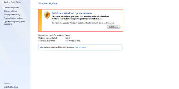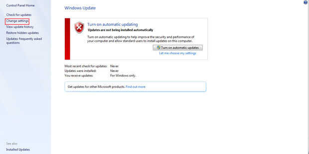 Para ir a Windows Update, vaya a su panel de control y seleccione Windows Update. Si dice "Windows está actualizado" paso que pase a las opciones de carpeta. Si parece que la segunda foto, que la primera cosa que necesita hacer es pulsar "Cambiar configuración" en la ficha izquierda (cuadro rojo muestra donde está en la primera foto)