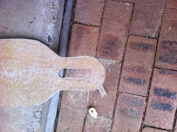 También cortar los agujeros para la gota a través y traza a su alrededor. Soy gota de corte a través de orificios para camiones de París o similar.