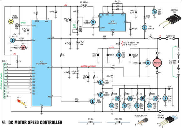 Prácticamente, circuitos de impulsión se utilizan en aplicaciones donde se utiliza un controlador de algún tipo y control de velocidad se requiere. El propósito de un circuito de impulsión debe dar el controlador de una forma de variar la corriente en los devanados del motor ASV. Los circuitos de impulsión discutidos en esta sección permiten al controlador de pulso ancho modular la tensión suministrada al motor ASV. Es la manera más eficiente para variar la velocidad de un motor BDC en comparación con los métodos tradicionales de control analógico. En algunos casos el motor sólo debe girar en una dirección entonces una topología switch solo con modulación PWM se puede utilizar para variar el voltaje aplicado al motor y así controlar su velocidad. Cuanto mayor sea el ciclo de trabajo PWM, más rápido el motor irá. La figura muestra el circuito para conducir un motor BDC en una dirección con solo FET (transistor de efecto de campo).