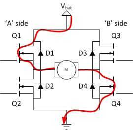 Cuando se requiere un posicionamiento o ambas direcciones de rotación necesitan (robots más necesidad) se utiliza un puente H completo con control PWM. El puente H es un circuito de transistor 4 que permite invertir el flujo de corriente al motor. Con un puente H y un pin PWM, puede controlar la velocidad y dirección del motor.