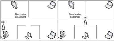 Tenga en cuenta que las señales inalámbricas pueden viajar mucho más fácil a través del aire que puede a través de densos objetos como muros de hormigón. Garantiza un camino claro y visible entre los routers y dispositivos de conexión se mejorarán enormemente su intensidad de la señal y la gama reduciendo también la interferencia de las corrientes de cableado y electrónicas en su casa. Al momento de decidir dónde colocar su router Wi-Fi no sólo tiene que colocarlo más cerca como el zócalo como sea posible. Hacer ejercicio donde es probable que utilice los dispositivos de conexión como smartphone, tablet y ordenadores y tratar de seleccionar una ubicación central a todos de estos pero con tan pocos obstáculos como sea posible entre ellos y el router.