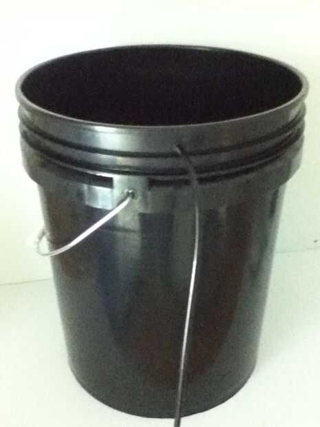 Use un taladro para perforar un agujero de 1/4" en la parte superior de la cubeta de aproximadamente 1" de la parte superior de la tubería de línea aérea de ¼".