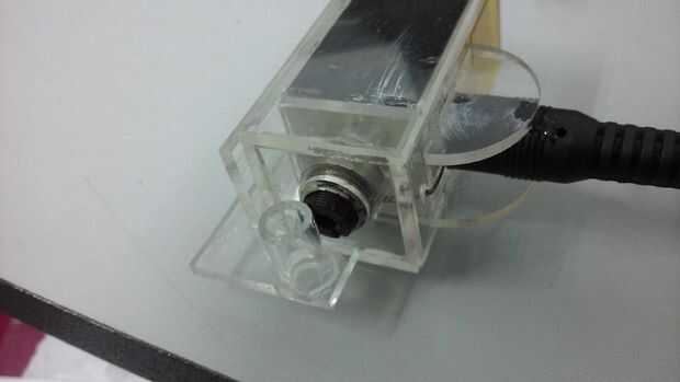 Por lo tanto, medí las dimensiones necesitadas. Tuve la suerte suficiente tener acceso a un cortador láser, que hace el trabajo más fácil y más limpio. Aunque esto podría lograrse por método de corte y pegamento con un montón de ajustes y ajustes para conseguir la alineación correcta. Láser corte las dimensiones en una hoja de acrílico gruesa 2mm. Luego había pegado encima y probado.