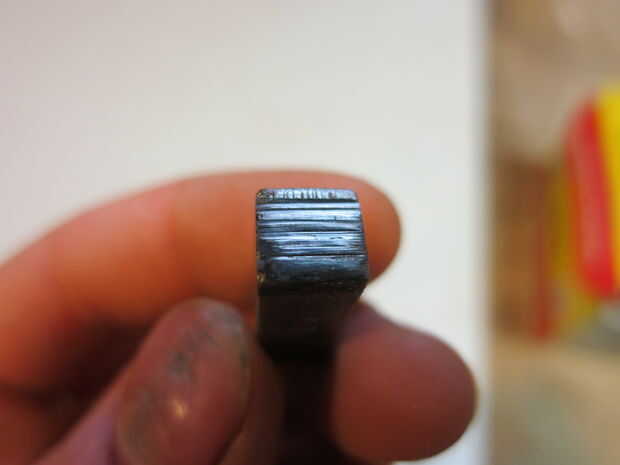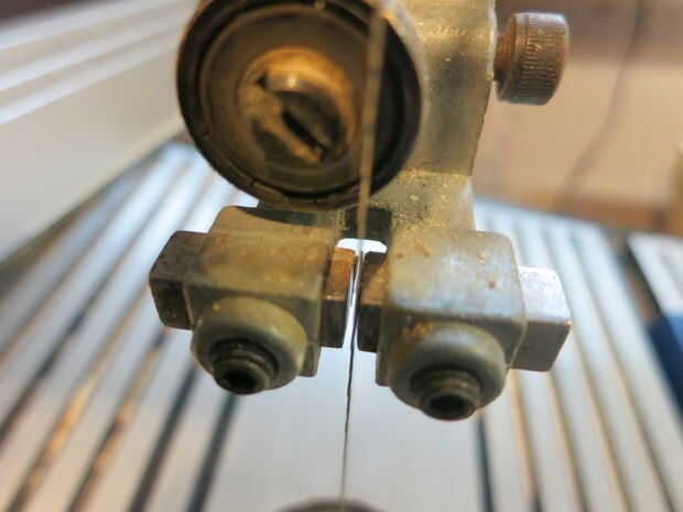 La plantilla se sienta en una mesa sobre un archivo. El bloque de guía se celebra en la plaza place al archivo y dentro el archivo con un tornillo de profundidad.