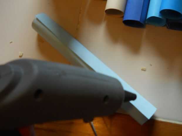 -Ejecute una línea de pegamento caliente abajo del rollo. Lo no ejecuto la totalidad porque algo de ella fue por encima de la curva de la botella. Corrí mina abajo de la costura, así que cuando presiono sobre el frasco, la costura se oculta.