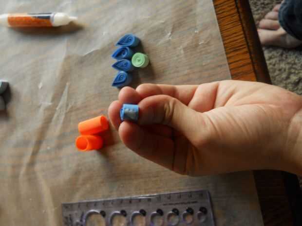 A continuación hacemos la flor real. En primer lugar, tome un pétalo y lugar pegamento en el lado redondeado grande. Con el pétalo sobre el papel de wac, presione en el centro de la flor. Repetir alrededor del círculo de la flor.