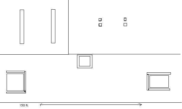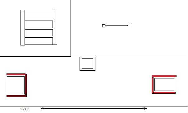 Inserte cuatro postes en el suelo para construir un soporte, y tablones de madera (atención al cuadro #2) inserto o registros en el boquete entre sus polos, para hacer una pared decente (tratar de hacer los posts de apoyo cerca de 7 pies alto y las tablas deben ir hasta aproximadamente 4 1/2-5 pies.) El rojo representa donde deberías colocar estos muros.