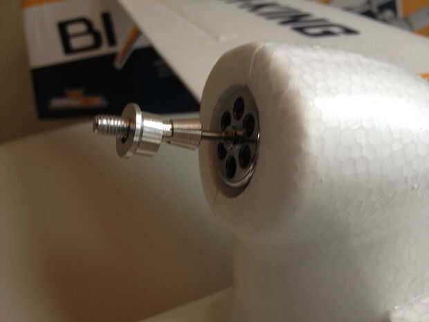Monte el pilar, en el kit, al eje del motor.  Esto se muestra en las fotos de arriba.