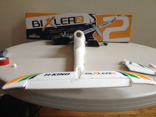 Agregue el pegamento a la muesca más en la parte trasera del fuselaje, como se ve en la imagen y colocar el estabilizador horizontal en la muesca. Conectar la bocina de control a la barra de acero para la superficie de control.