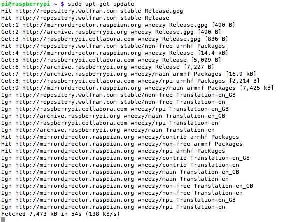 Ambos de estos comandos te dará un montón de texto incomprensible. Se espera un rato. Ser paciente. Estos Actualizar lista de paquetes desde los repositorios diversos y actualizaciones para obtener información sobre las versiones más recientes de los paquetes y sus dependencias.