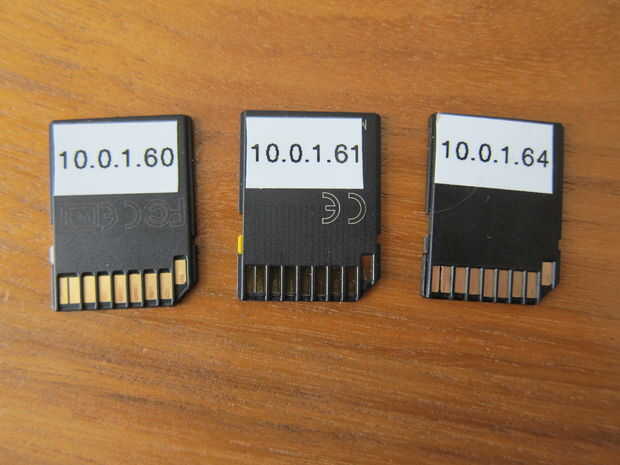 Para múltiples tarjetas de SD, usted querrá usar direcciones IP diferentes. Uso de un fabricante de etiqueta y adherir las direcciones IP en la parte posterior de las tarjetas SD, por lo que nunca me confundo.