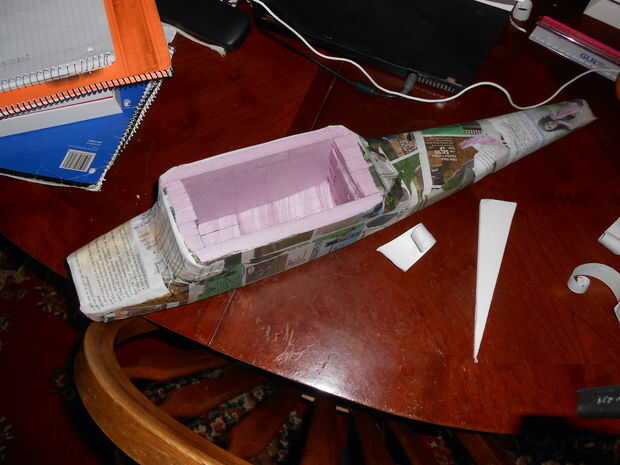 Seguimiento de la forma en las fotos abajo en la hoja de la espuma rosa. Es acotado, pero tuyo puede ser cualquier cosa cerca. Una sierra de cinta, Sierra de calar o de vaivén sería todo gran trabajo para ello. Usé un cuchillo de la manía simple, que funciona igualmente bien, pero eres libre de elegir. Tamaño uno contra el otro y asegúrese de que son aproximadamente iguales. Puede ser apagado por alrededor de una pulgada, y usted va a estar bien. No tenga miedo de repetir una plantilla si no coinciden con los otros de cerca - recuerdo, necesitamos 7 total.