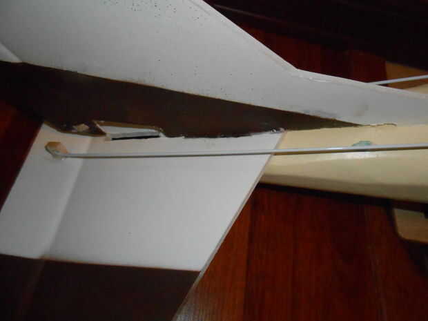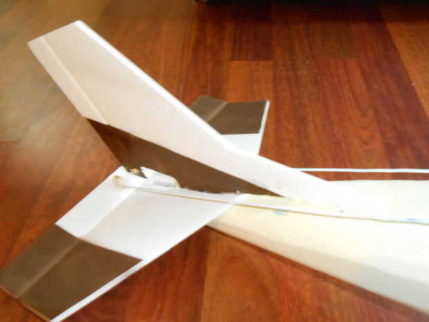 Usted también necesitará hacer cuernos de control para los levantaválvulas actuar sobre. Esto les permitirá realmente mover el timón y elevador. Usé un pequeño rectángulo de una clavija de madera (pasador cuadrado) y perforar agujeros a través de ellos que quepa mi percha. otra vez, tendrás que diy este paso; sus materiales pueden ser diferentes a la mía. Utilice mis fotos ayuda! Realmente usted puede utilizar casi cualquier cosa para cuernos de control, como puede pegar en el tablero de la espuma. Utilice su propio juicio sobre dónde colocar los cuernos de control-dependiendo de donde (en relación con el fulcro de la palanca) estos se colocan, usted conseguirá el desplazamiento de las diferentes superficies de control. Esto efectos directamente la sensibilidad del avión para timón y elevador de entrada.