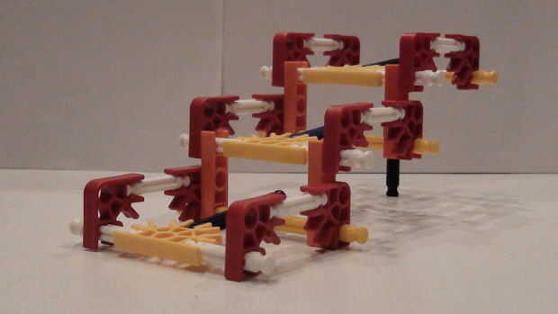 no creo esto pero me pareció como un elemento de máquina de la bola buena. Un sistema de educación K'Nex tenía instrucciones para ello y lo llamó el "tornillo de Arquímedes". Si poner una bola en la parte superior de la tolva y añadir un motor,