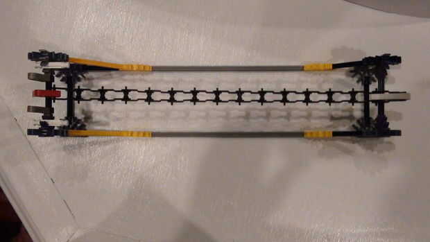 De este elemento, la bola rueda sobre una longitud de cadena horizontal. La cadena está sujetada a los conectores a ambos lados de la cadena. Se quebró en dos barras. Una varilla debe ser mayor que el otro. Asegúrese de que la bola es guiada en la cadena de una entrada recta o caerá. Cuidadosa planificación necesaria, especialmente si hay varias cadenas en una sucesión rápida. Siempre un elemento interesante en cualquier máquina de la bola.