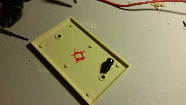 4. cuando el LED en el soporte de montaje, el soporte que utilizan solamente tenía un forro para un solo cátodo / par de ánodo, así que acabo de poner el LED RGB en y llena con caliente pegamento en su lugar.