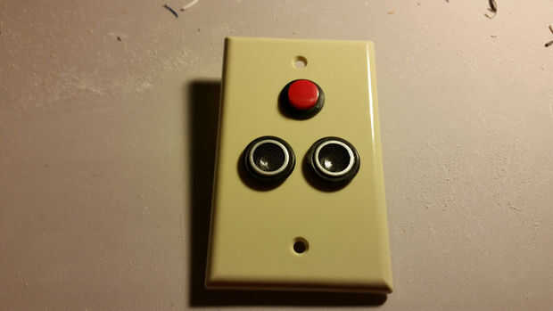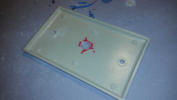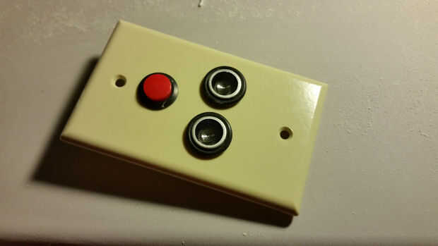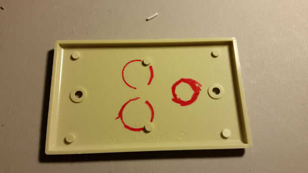 1. con un rotulador, traza los recortes de su sensor de la distancia y el panel de montaje de botón en la parte posterior de una placa en blanco y el contorno de su LED de montaje en el otro. -Asegúrese de colocar el botón para montarse sobre el sensor de distancia cuando finalmente se monta en la pared.