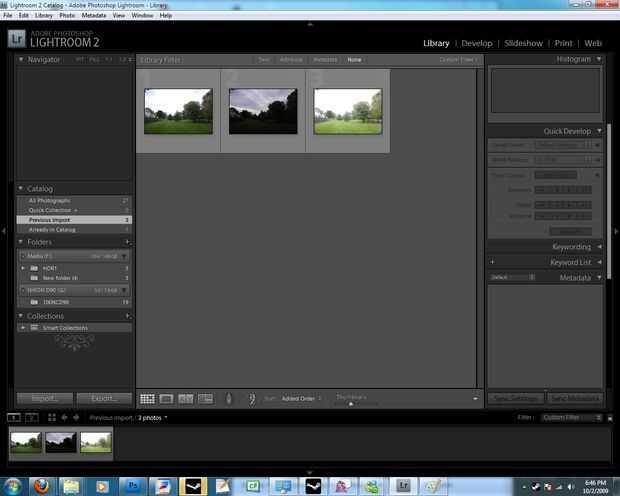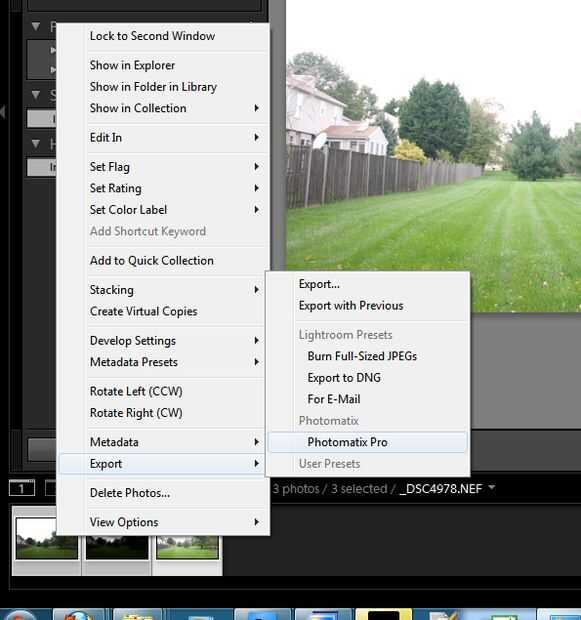 Seleccione las 3 imágenes y haga clic derecho > exportación > photomatix pro