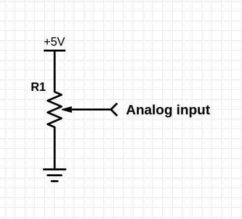 Vamos a conectar nuestros potenciómetros y faders como divisores de tensión simple. Puede leer más en esta página de Wikipedia si no estás familiarizado con este principio.