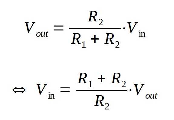 Leer tensiones superiores a 5v (3.3v), necesitarás 2 resistencias, para crear un divisor del voltaje. Podemos transformar la fórmula anterior para obtener Vsubin/sub si sabemos Vsubout/sub. (ver imagen)